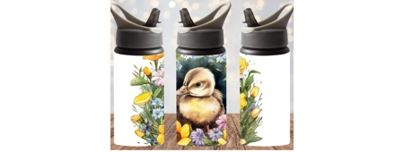 White sublimation coated Aluminium Drinks bottle with integrated straw.  Bottles can be printed with any design and can be personallised with name of choice.